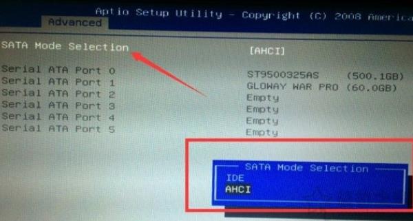 2.找到SATAModeSelection(硬盘模式选择)选项打开,修改硬盘模式到IDE尝试性操作,更改完成后按。F10保存即可,如图所示;