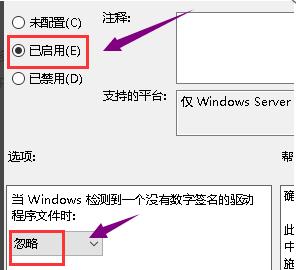 7、将配置改为已启动,同时检测到无签名驱动选择忽略,点击应用按钮。如图所示: